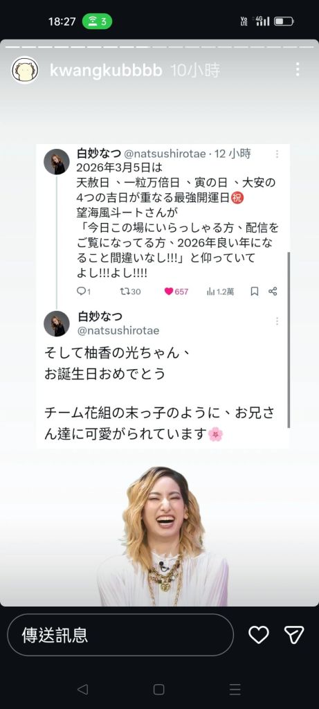 十二國記的共演人員友野還記得光的生日,發文祝賀她的生日,好貼心啊🌷