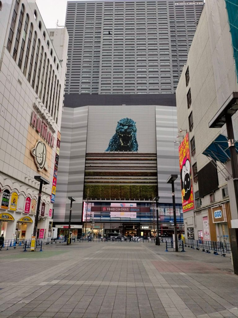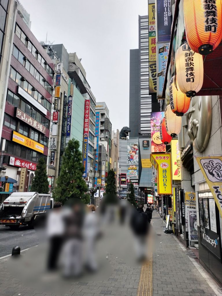從新宿伊勢丹出發,到歌舞伎商店街之前,可以看到TOHO戲院的哥吉拉。