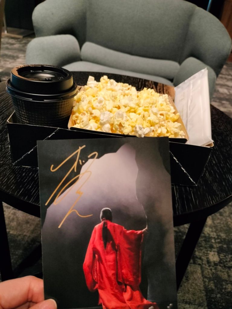 我買的票是CLASS A 的,隨票附贈飲料與爆米花,飲料不論冷熱飲有多樣可供選擇,我選熱拿鐵