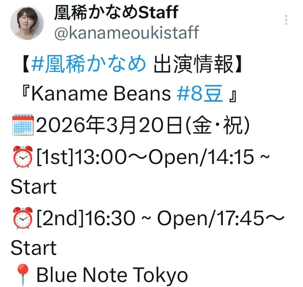 Kaname Bean 系列是凰稀かなめ的dinner show.