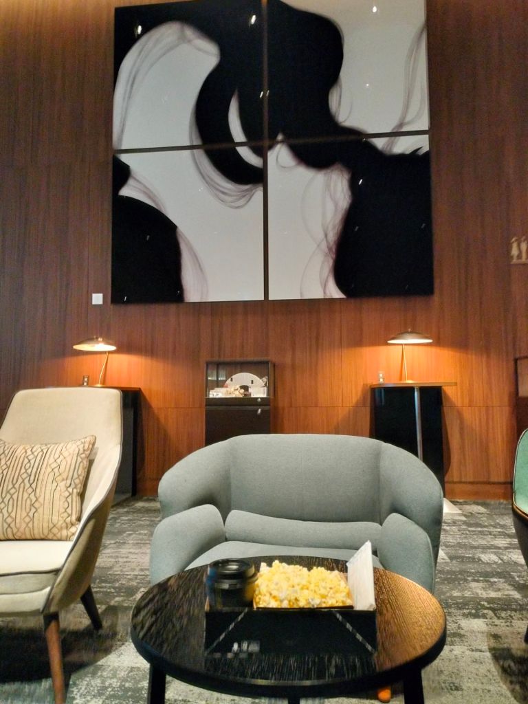電影票包含了爆米花與熱飲,去了洗手間之後還有餘裕可以領取爆米花與熱拿鐵。