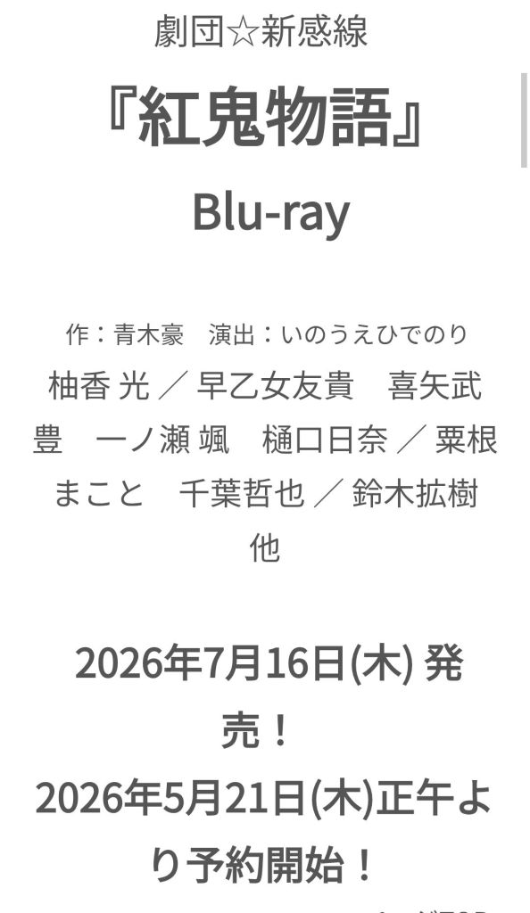 2026-04-17 Lilian 20260417 紅鬼物語藍光推出 2026/7/16 開始販售 2026/5/21 預購 我猜會再出一波週邊🎁 官方訊息如下: https://www.e-oshibai.com/Page/Feature/FeaturePage019.aspx?fbclid=PAT01DUAROhLNleHRuA2FlbQIxMABzcnRjBmFwcF9pZA81NjcwNjczNDMzNTI0MjcAAad0Hr65XyAP5yX3c6zcnrJIECo8r__7I-NjO_VafpyDPllxHQ0nQGzIaoactw_aem_UXflgO9hqnNu0ShwKNDxEw The End 分享此文: 分享到 X(在新視窗中開啟) X 分享到 Facebook(在新視窗中開啟) Facebook 喜歡 正在載入... 相關